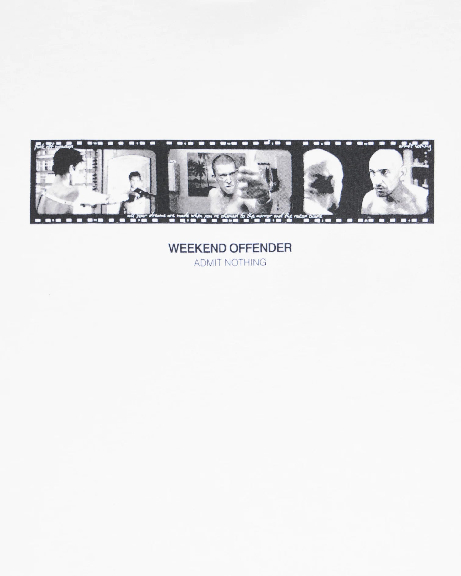 Weekend Offender eccelle nel fondere cultura pop, cinema e streetwear con autenticità. La Reflection è un esempio perfetto di questa filosofia: non una semplice t-shirt con stampa, ma un pezzo che racconta storie, evoca emozioni e celebra l'arte cinematografica.